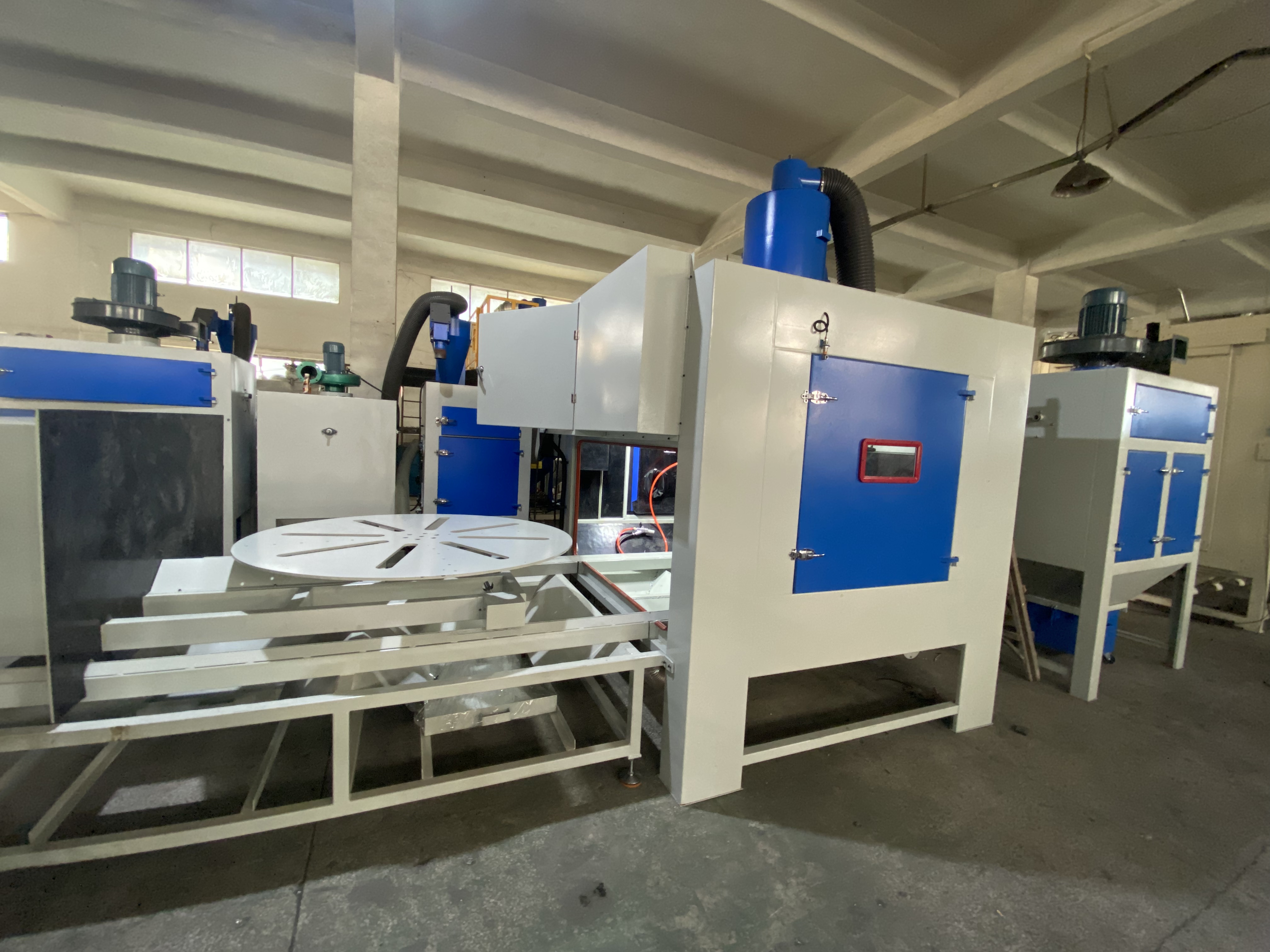 公司的转盘式自动喷砂机采用了先进的技术和工艺,具有诸多显著特点。首先,设备运行稳定可靠,能够长时间连续作业,大大提高了生产效率。其次,喷砂效果均匀一致,能够满足不同客户对表面处理的精度要求。此外,该设备还具有操作简便、维护方便等优点,降低了客户的使用成本。