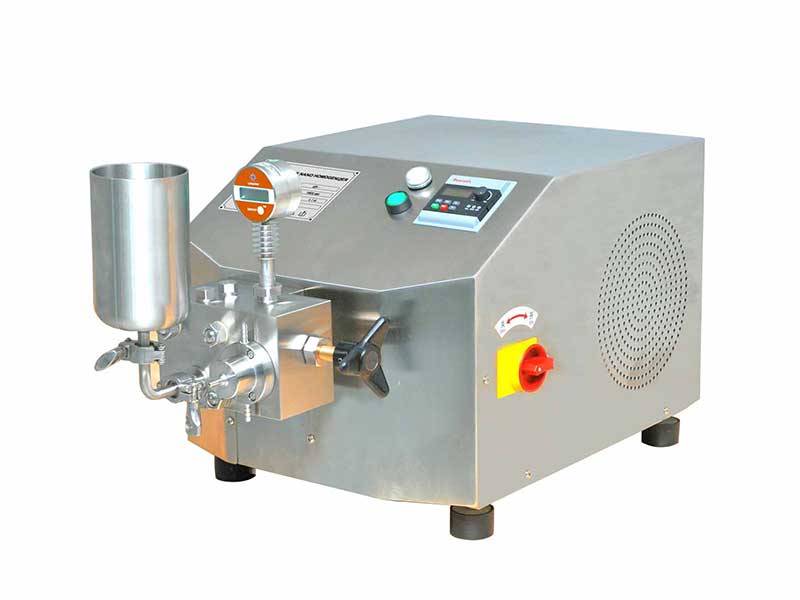 再看GN系列,标准额定大处理量为1500L/H,小处理量为10L,标准额定工作压力为1500bar,产品过程粘度小于2000cps,大进料颗粒尺寸小于500um。该系列采用四支陶瓷柱塞交替驱动,超高压设计,物料脉冲极其平稳,标配柱塞润滑装置,密封使用寿命更长。均质压力大设计压力为1800bar/180Mpa/26100psi,选用卫生级压力传感器或全进口数字隔膜压力表,均质流量小样品量为10升,可在线排空,物料消耗少,特别适合工业化大批量生产。同样具备人机互动触摸屏自动控制界面,主控制元件全部选用西门子品牌,灵敏度高,操作简单。