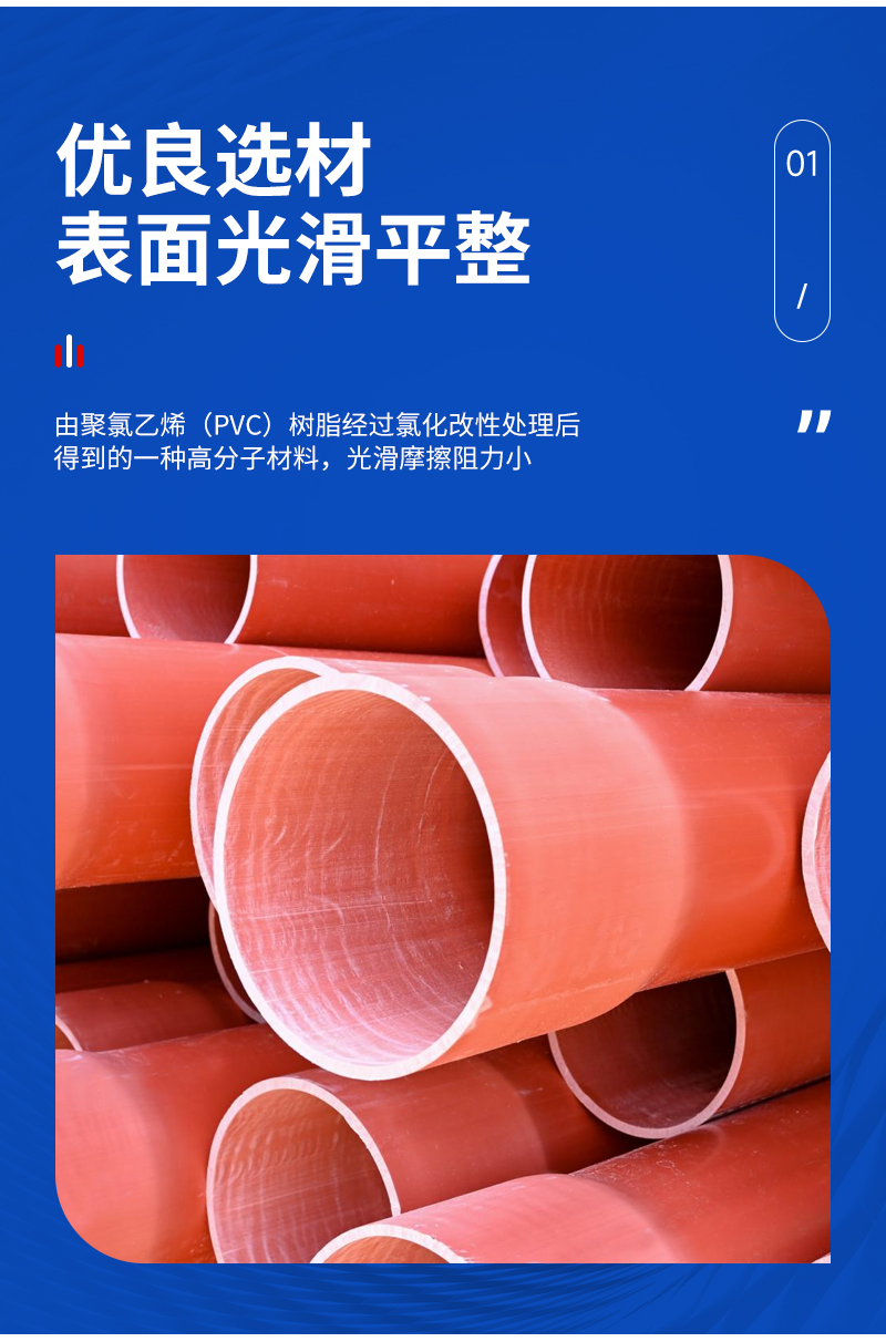 该公司生产的CPVC电力管具有诸多优势。首先,其材质性能优良,具有较高的耐热性,能够在较高温度环境下稳定工作,保障电力传输的安全与稳定。其次,管材的机械强度大,抗压能力强,能够承受较大的外力作用,不易变形损坏。